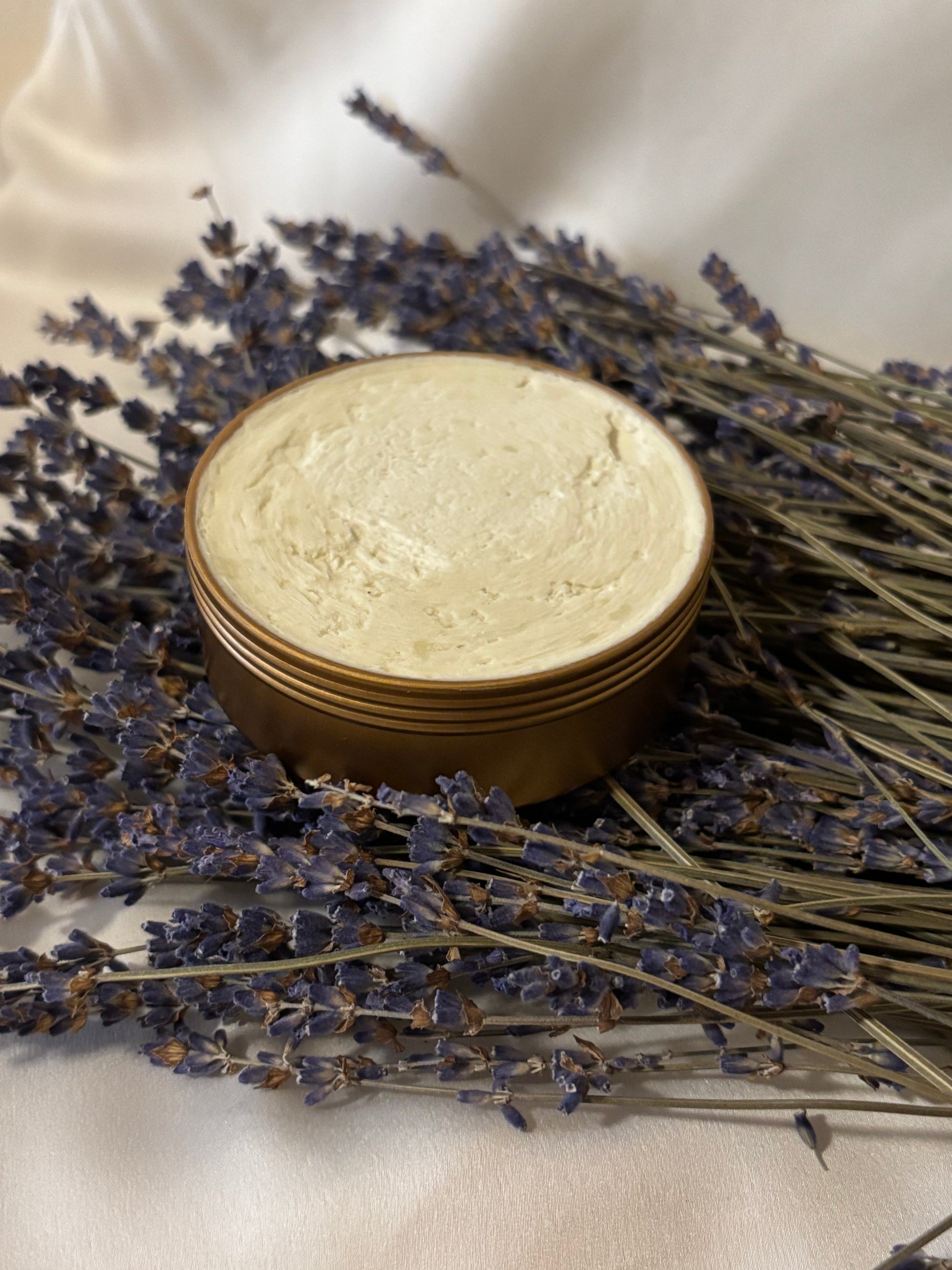Made with only 4 ingredients: organic whipped shea butter, organic aloe vera and organic calendula (in olive oil). No artificial fragrances added or added chemicals, preserved with vitamin e. This butter has only the delicate nutty scent of shea.